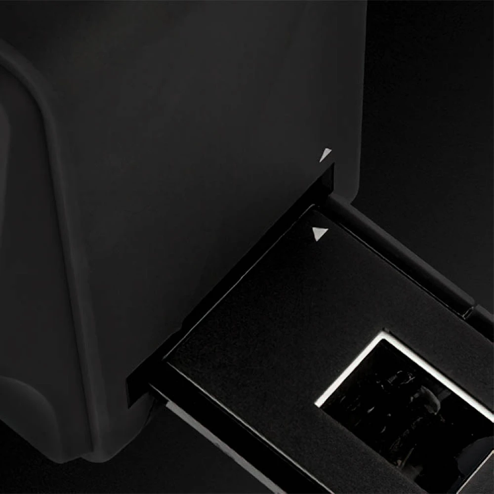 The scanner is powered by the rechargeable battery. That makes the scanner portable and easy to bring along so you can sit in a comfortable spot while scanning your images. When the battery needs to be charged, you can connect it to any USB-outlet with the included USB-cable and charge the battery. The scanner can be used while charging.