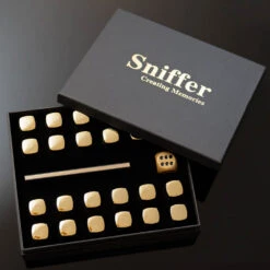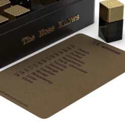 The Sniffer fragrance game is available in two variants, choose between a game with 14 bottles and a game with 24 bottles. The pack includes a rule booklet in English and a fragrance fact sheet with the corresponding number under the bottles.