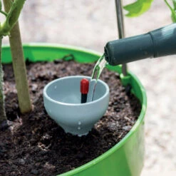 Practical self-watering pot with plant support that makes sure that your plant gets the perfect amount of water. The pot is perfect for growing tomatoes, bell peppers, peas, beans and other high plants in need of some extra support and water.