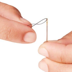 The eye of the needle works like a carabiner hook, making it easy to thread the needle. Put the thread on the needle and slowly push on the eye which opens so the thread falls down into the eye of the needle. No need to fiddle with the thread to try to get the end of the thread through the needle eye. Save time for sewing!