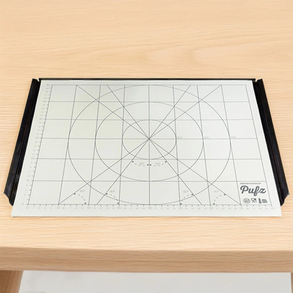 Bread roll dough, cake dough and marzipan are easily released from the baking sheet, and the smart gradations in the pattern also make it easier to roll out marzipan and other types of dough. The natural friction of the silicone also helps the baking sheet to lie still on the table.