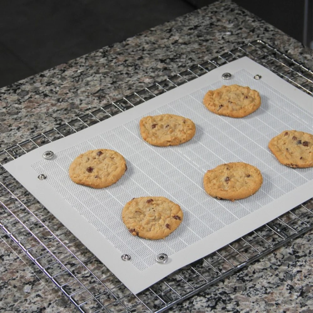 The oven mat is made of heat-resistant and food-grade silicone. The silicone has natural non-stick properties that make the mat excellent for use as a surface when baking cakes, breads, scones and many other baked goods.