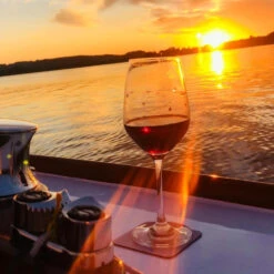The magnetism between the glass and the coaster has been carefully calibrated so that it is easy to pick the glass up, yet it still stands firmly if the table or the boat starts leaning. The magnetic coasters are backed with a self-adhesive nanogel that sticks to almost all smooth surfaces.