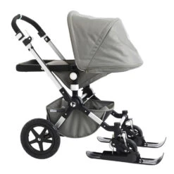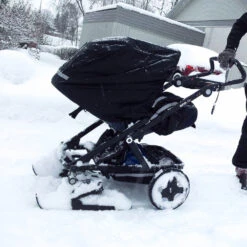 Those that have prams with three wheels can choose to put only one on the front wheel or put a ski on each of the wheels, which makes your pram all the more snow-friendly.
