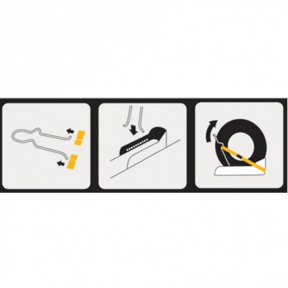 1. Mount the straps to the bracket that fits the size of the pram wheel.