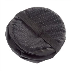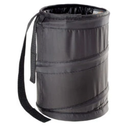 The cylindrical bin is easily hooked around the headrest with a handy Velcro strap. The bin also has a rubberised underside to keep it firmly on the floor. The bin can also be folded and stored in the seat pocket when not in use.