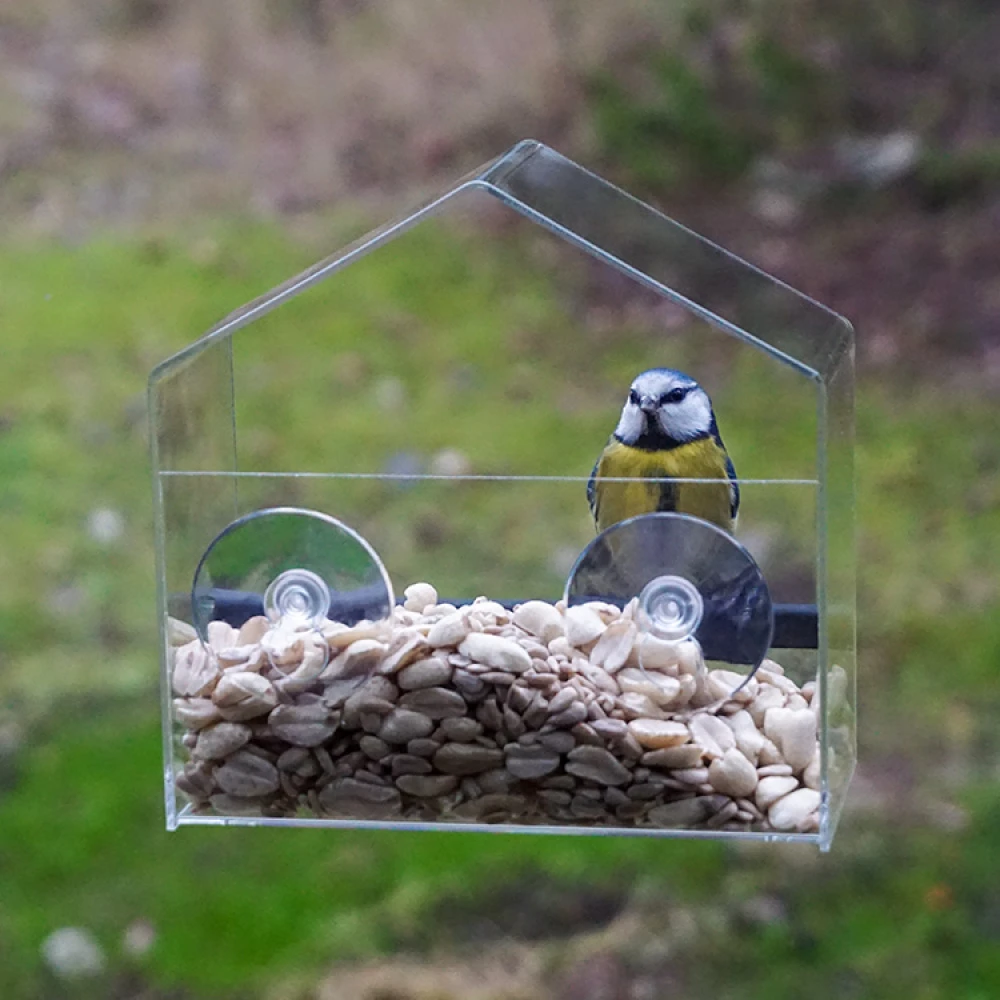With this little bird feeder, you can help small birds get food, while at the same time draw them in closer to you. Fill the bird feeder with seeds, affix it securely on the window, and watch as the small birds come to feast!