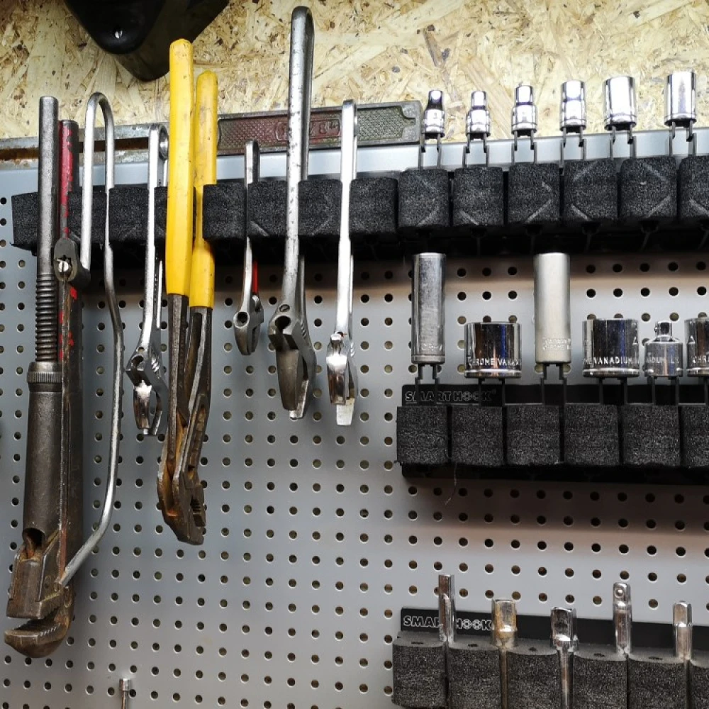 It’s easy to wedge a tool into SmartHook’s mouldable foam holder. The foam holds the tool in place and instead of having your tools lying in a toolbox, you can have your tools set up where you can easily access them.