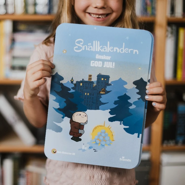 Snällkalendern är framtagen av stiftelsen Friends tillsammans med Bok-Makaren AB.