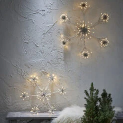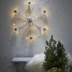 This festive outdoor decoration is in the shape of a large white snowflake. The snowflake creates a lovely Christmas atmosphere on the balcony or in the garden and has lots of small, pretty lights that shine with a warm white light. The snowflake is great to use throughout the winter months and is easy to hang or lean against a wall.