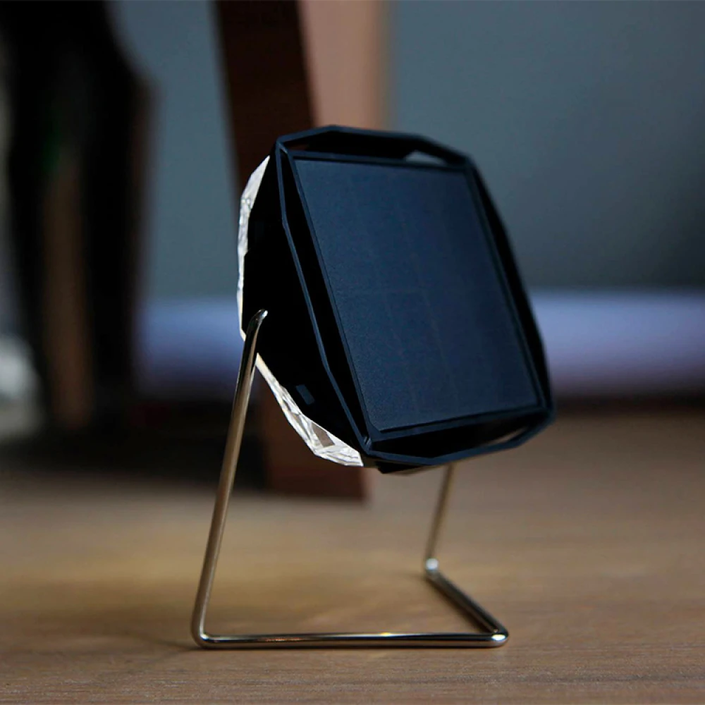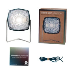 Little Sun Diamond is a practical solar lamp with a removable stand, perfect to use either at home or out hiking. The lamp’s bright white light spreads well through the prisma-like plastic and is strong enough to read by or to light up the tent at night.