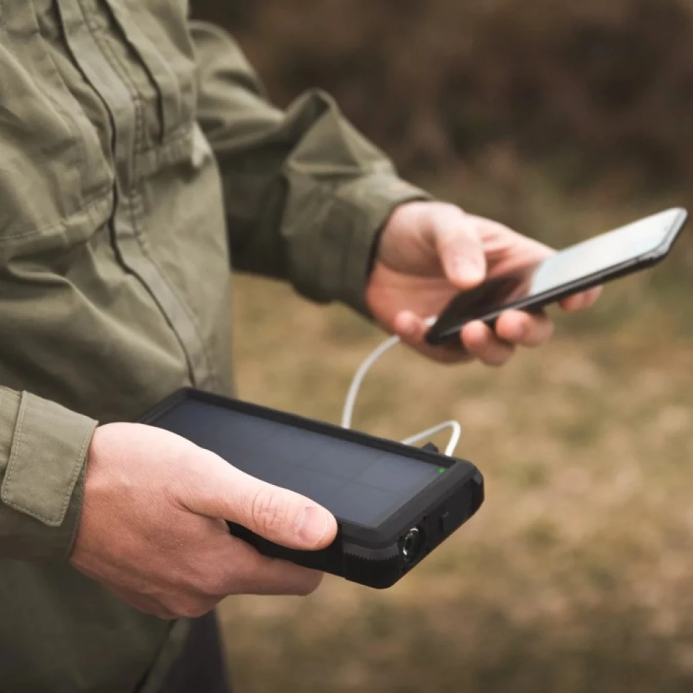 Place the Powerbank in the sun or clip it onto your bag during a hike. IP67 certified – can handle all different types of weather circumstances.