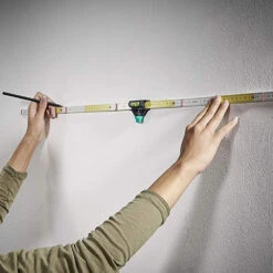 With Wolfcraft’s clever folding rule spirit level, you can make sure things are straight when measuring between two horizontal points. Having the small spirit level attached to the folding rule makes it easier to set up, for example, a shelf or hang paintings on the wall and helps with other projects where you want things to sit straight.