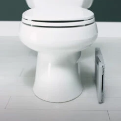 The collapsible toilet stool is made of recyclable polypropylene. It’s easy to clean with your normal bathroom cleaner and a soft cloth.