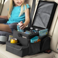 This smart storage bag with cooling compartment is perfect for long car journeys so you can pack snacks, drinks, a lunchbox and entertainment in the same bag. The storage bag has lots of roomy pockets on the sides, a drink holder on the front, a game table on the lid and you can keep food and drink cool for your whole journey in the large cooling compartment.