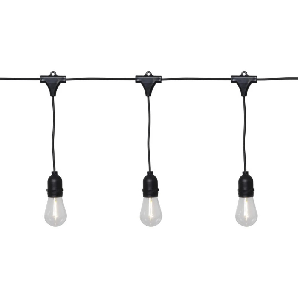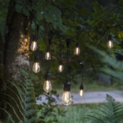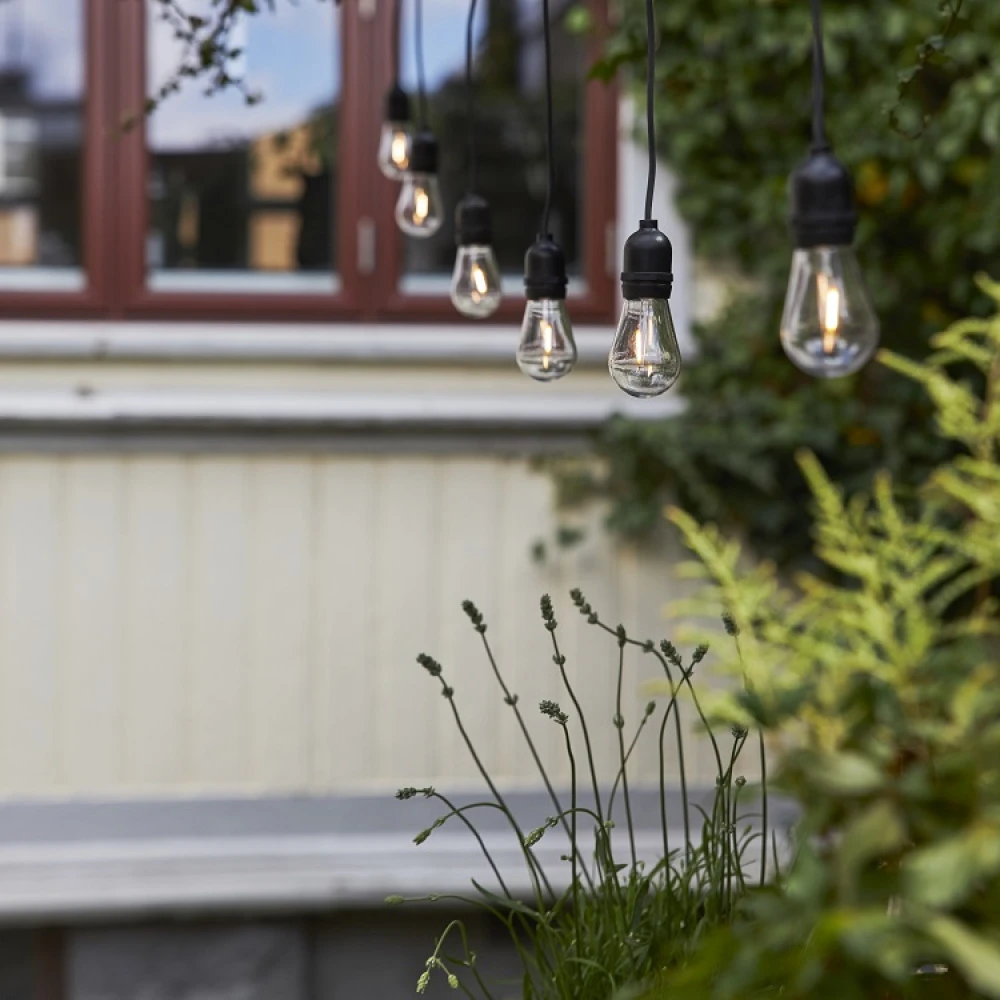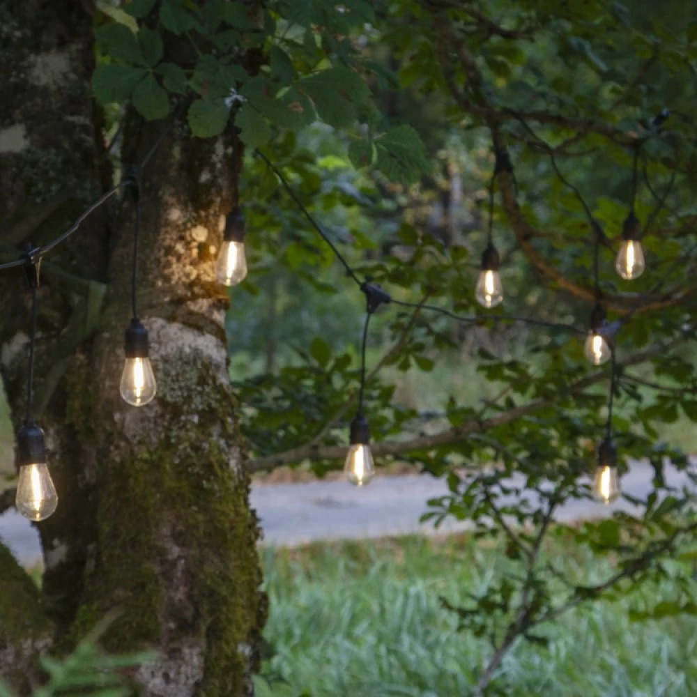 The string lights has 10 powerful light bulbs hanging down that gives you a little bit of extra light during parties and evenings in your garden. The string light is beautiful to hang on the patio or your balcony but can also be hung in a tree or a party tent with the help of some cords.