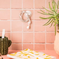The soft suction cup hook is easy to mount and useful as a holder for a razor or toothbrush in the bathroom, as a hanger for your charging cable by the nightstand, or as a hook for your keys in the hall.