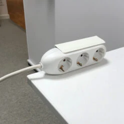 The power board holder can easily be attached to table tops or shelves that are up to 24 mm thick. The holder fits both short and long power boards that are at a maximum 5.5 cm wide.