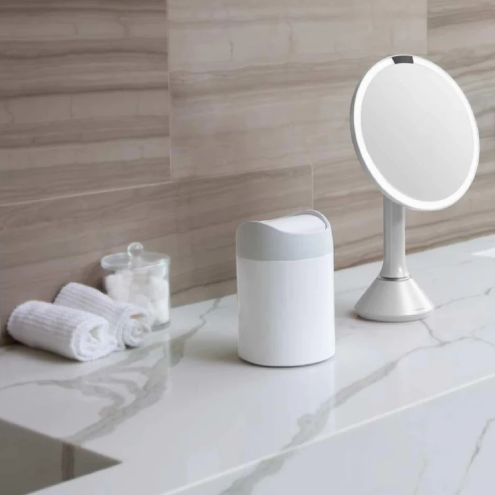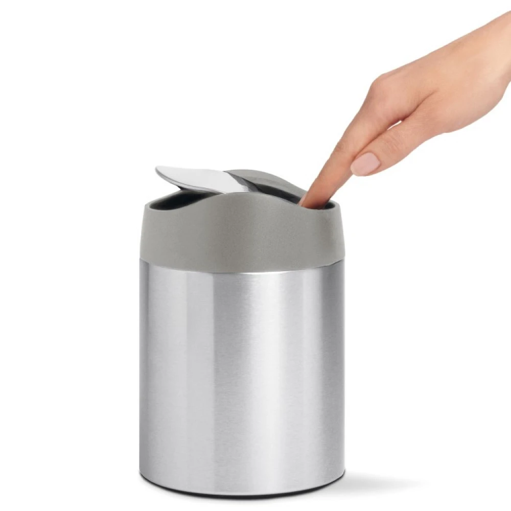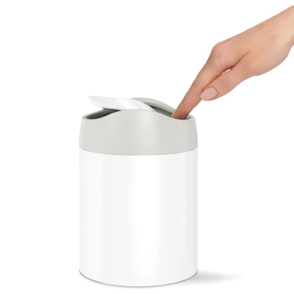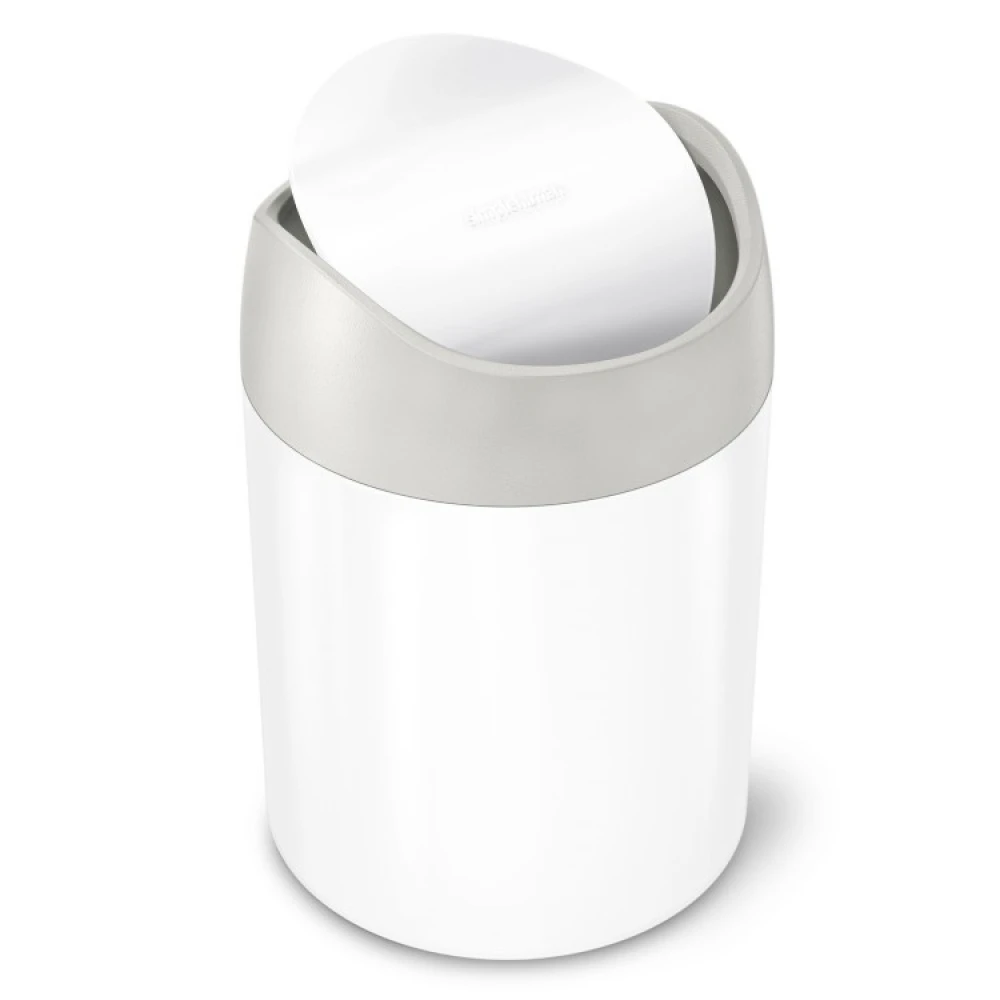 This small wastepaper flip top bin is handy to have close at hand and perfect for throwing away small messes. It holds about 1.5 litres and is great for throwing away cotton pads or cotton buds in the bathroom, in the kitchen for napkins, coffee pods and tea bags, as well as for dryer lint in the laundry room.