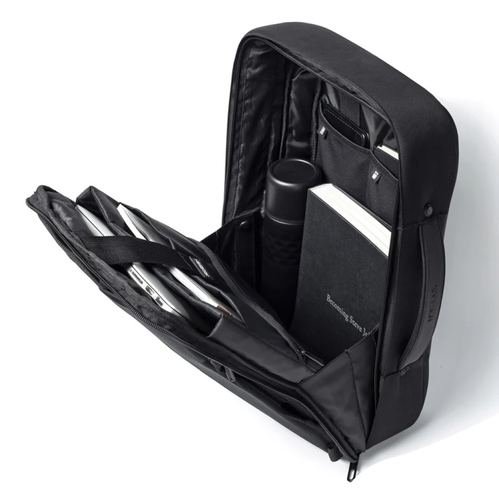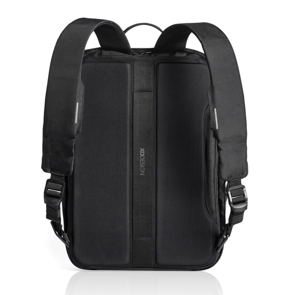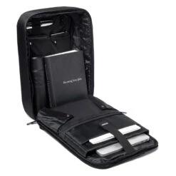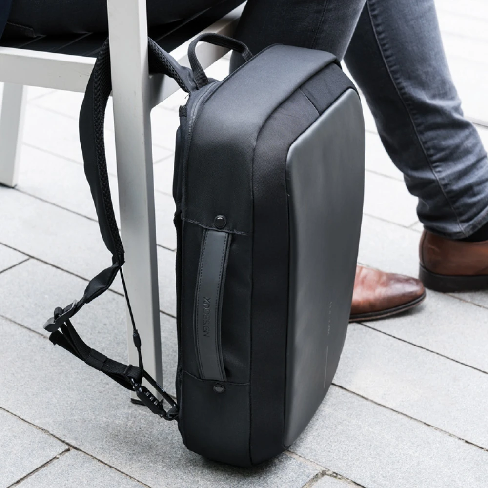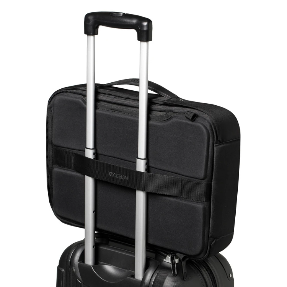 The backpack has sturdy yet comfortable straps that efficiently even out the weight on both your back and shoulders. The backpack is easily converted to a briefcase when the straps are tucked away to the compartment in the back. As a briefcase, the comfortable handle makes it easy to carry or if you prefer you can carry it with the included shoulder-strap. If you are travelling you can easily attach this smart bag to your cabin-bag with it’s built-in strap to keep all your goods secure.