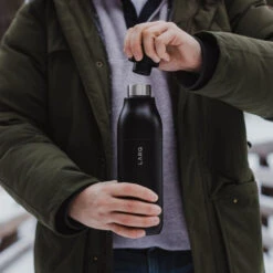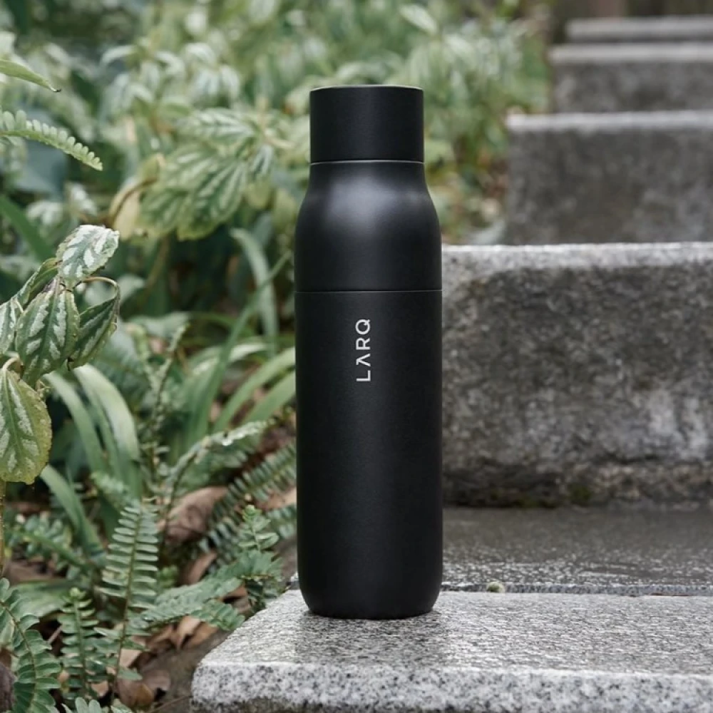 The LARQ thermos bottle with UV purification is the world’s first self-cleaning water bottle that also purifies the drinking water in the bottle from potential bacteria and viruses. Portable UV purification allows you to purify water on the go and the insulated walls keep drinking water cold for up to 24 hours and hot drinks hot for up to 12 hours.