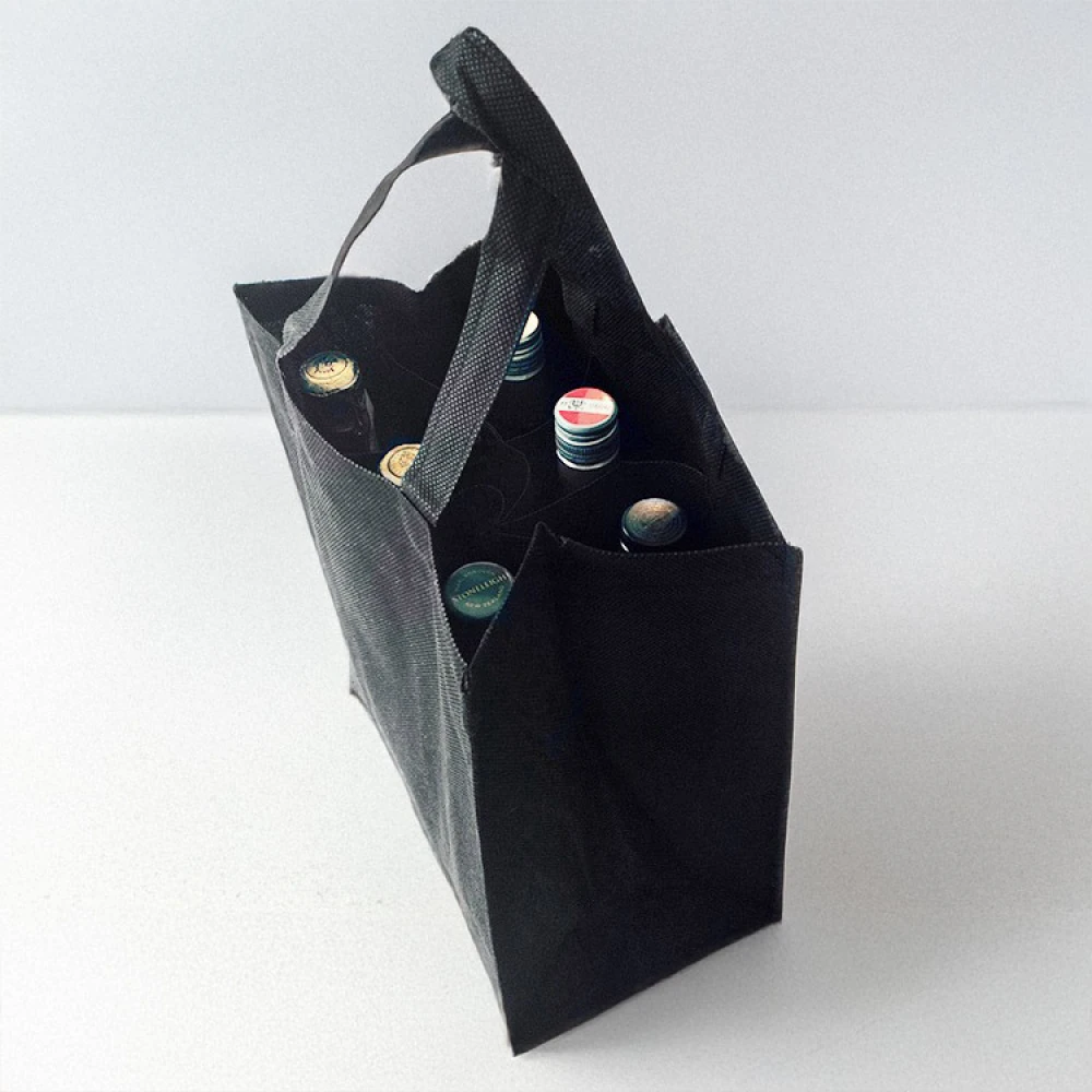 The bag is made of durable non-woven material. Holds 6 bottles of both normal and magnum sizes.