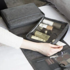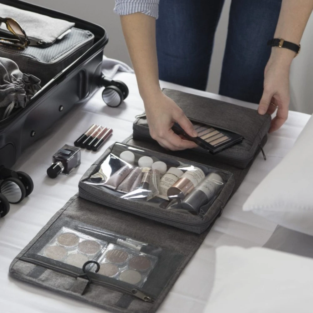 With a proper travel toiletry bag, you can fit all your toiletries in your suitcase. The toiletry bag has many smart pockets and compartments to keep your things organised on the go. You’ll have plenty of room for travel bottles, make-up, toiletries, medicines and more, and when you’re off on your travels, simply fold the toiletry bag up and it’ll take up little space in your suitcase.