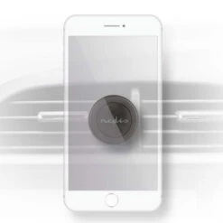 Press the mobile phone holder onto one of the vent blades in the car’s ventilation grille. Choose one of the two metal plates supplied and stick it on the back of your mobile phone or mobile cover. The thin metal plate is attached using a strong 3M adhesive and the round magnetic head on the mobile holder ensures that the phone does not slip off the holder.
