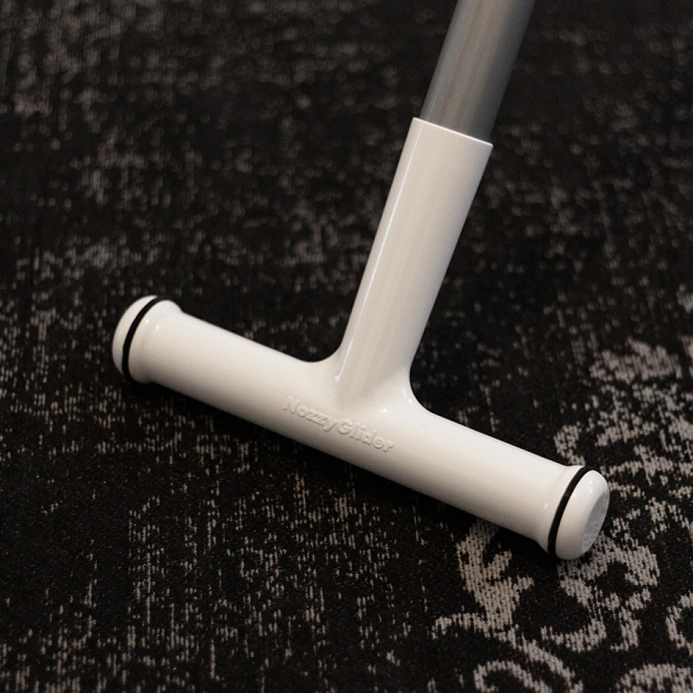 With the Swedish-made vacuum cleaner nozzle, NozzyGlider, you can vacuum everywhere without having to switch settings when you move between carpets and hard floors. The super-light nozzle has low friction, does not suck into the surface, and has several intakes both under and on the sides of the nozzle, which means that you can even vacuum into the corners.