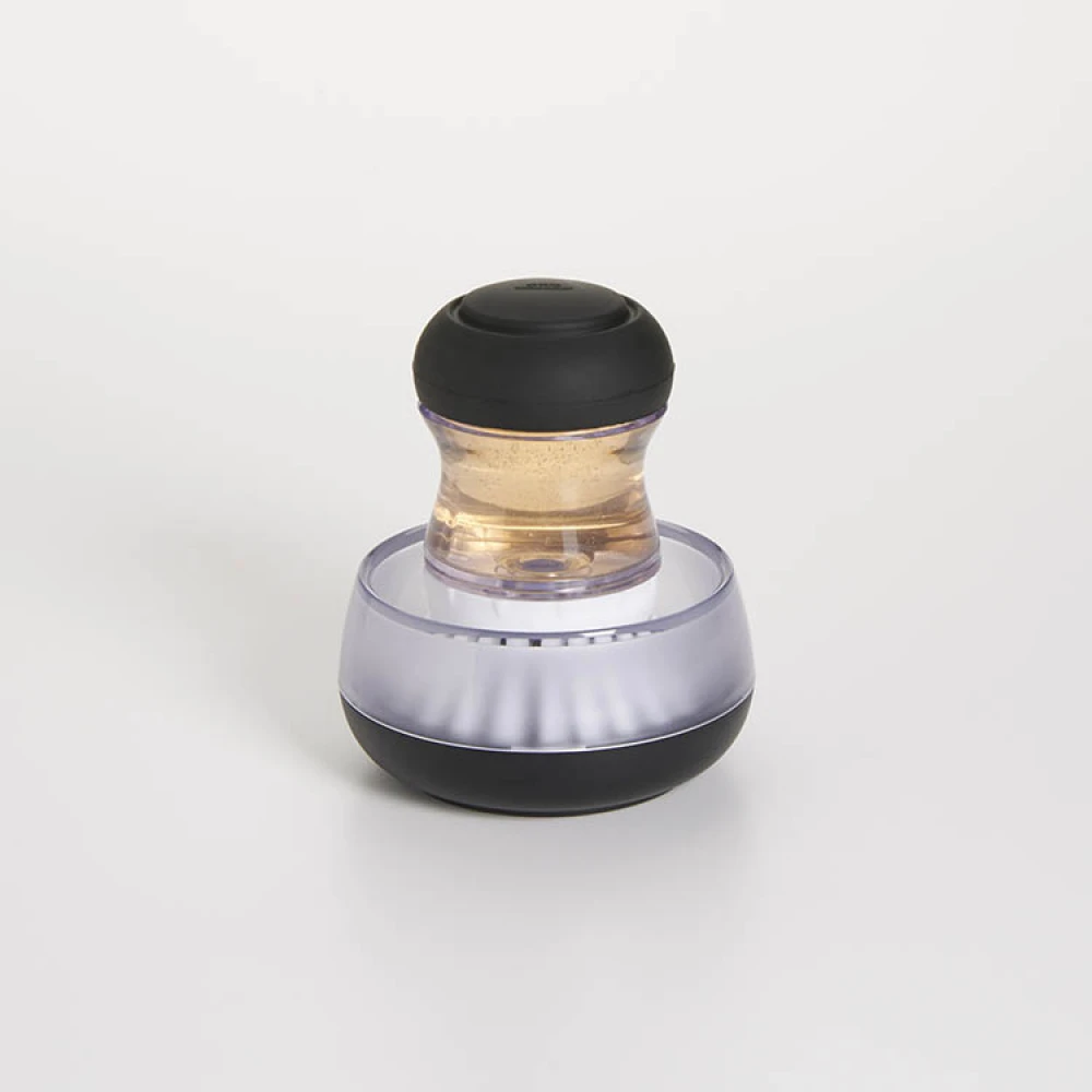 You keep the washing-up brush in the soft “”pump”” which controls how much washing-up liquid you want to use and the washing-up brush’s “”window”” tells you how much washing-up liquid is left. When it is finished, you simply refill it by unscrewing the top of the brush. If the brush gets soiled, it can be washed in the washing-up machine.