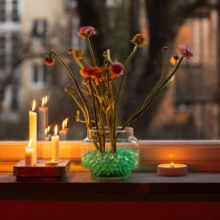 Fantastic tiny little pearls that, after a few hours soaking in water, expand into balls of jelly. The beads are used as water and support for bulbs, cut flowers, orchids or house plants. The beads hold moisture so well that you can put the plants among the beads without needing to water your plants as often.