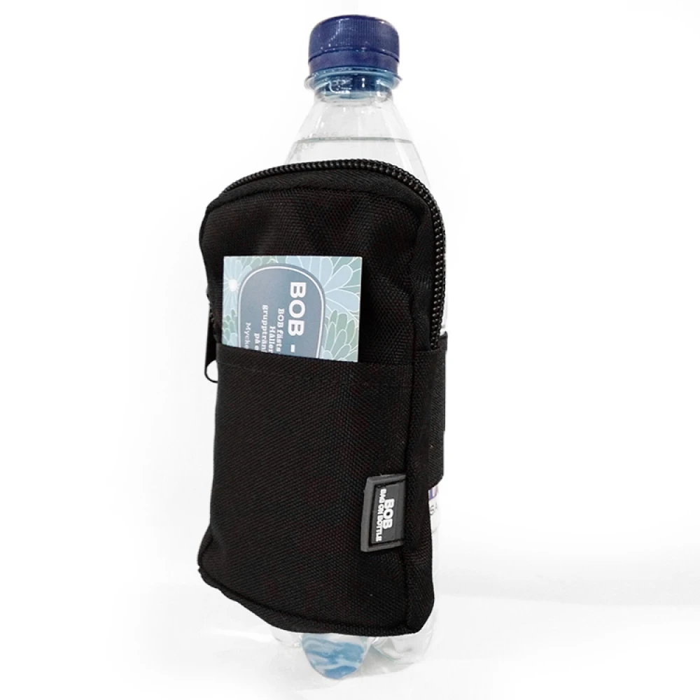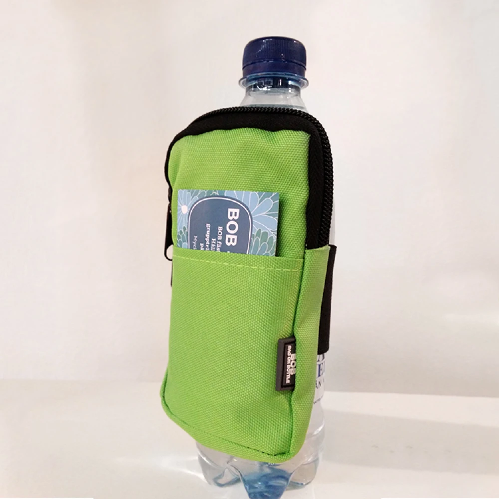 The BOB, also known as the Bag on Bottle, is a smart little bag that attaches to your water bottle or wrist. This small pouch fastens to your water bottle as a convenient way store your keys, hair ties or various cards during a workout or other excursion.