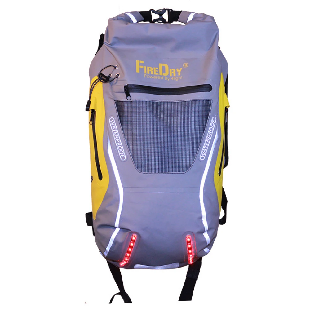 The FireFry is a Swedish backpack with patented lightning in the front and back. The lights make you visible in the dark and the waterproof backpack is perfect to wear when bicycling in traffic.