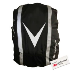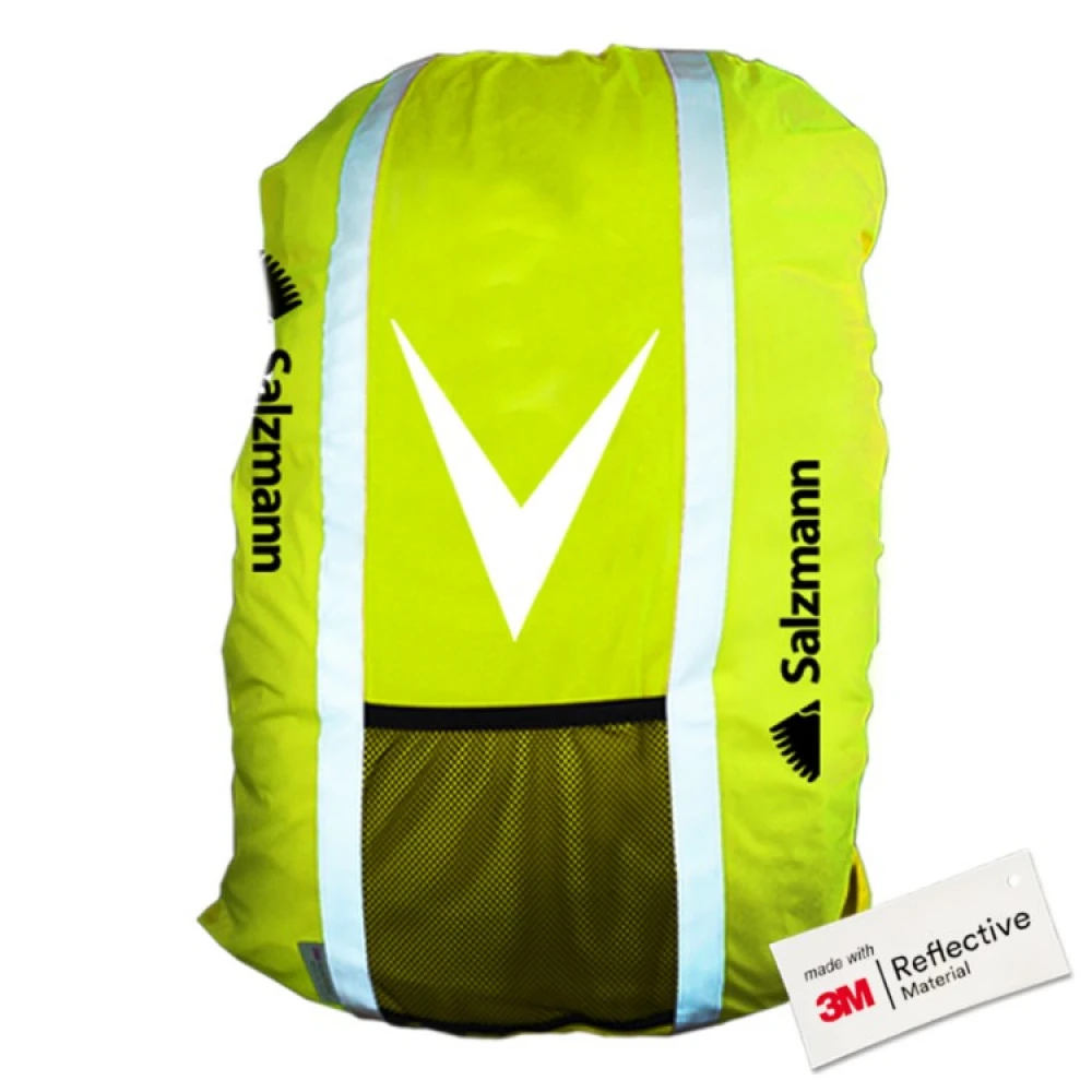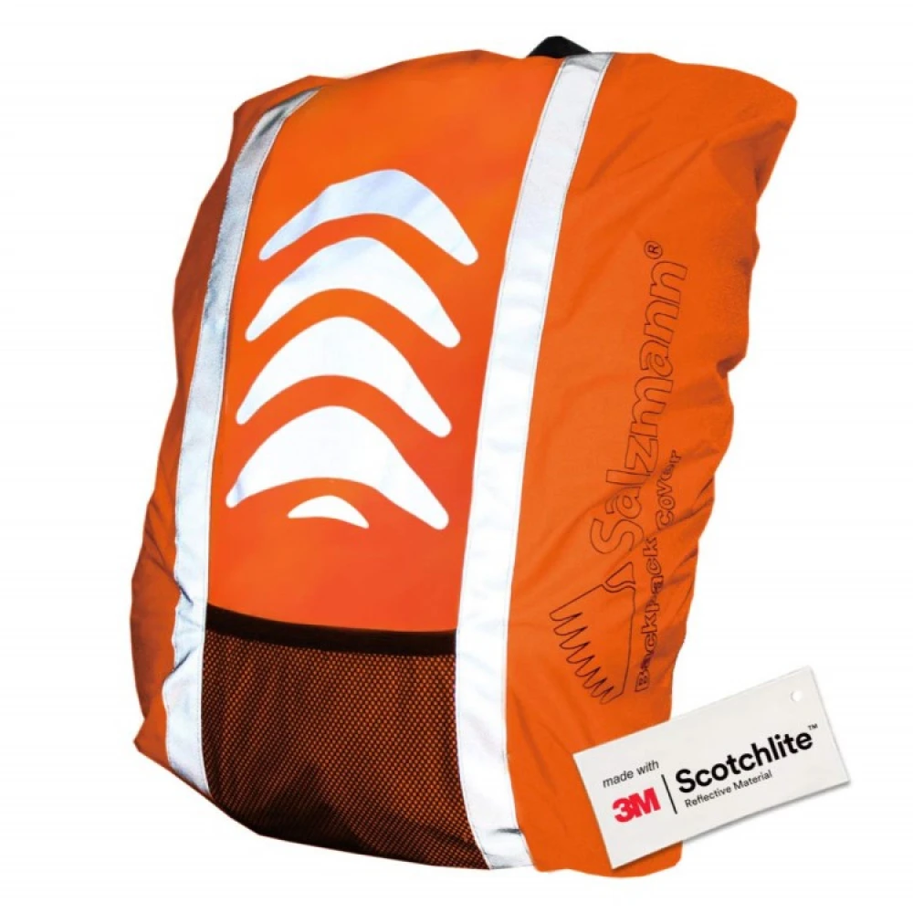 The reflective backpack cover comes in several colours. The yellow, orange and black covers also have a small mesh pocket on them.