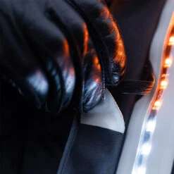 The built-in LED lights are strong and make you visible from up to 1 km away. But it’s above all at short distances (20-100m) that the lights really make a difference. The strong lights draw the attention of your fellow road users and significantly increase your visibility in a high-traffic environment.