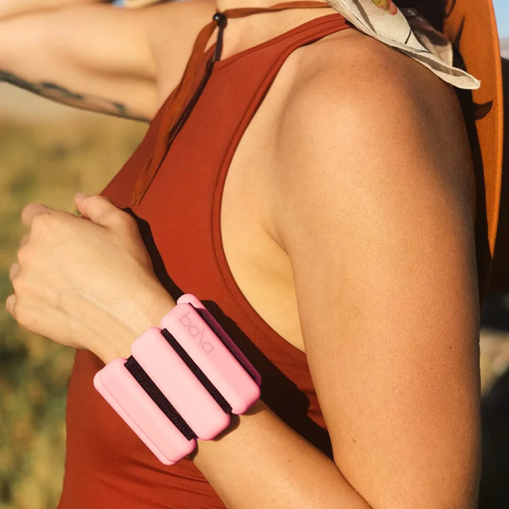 Bala Bangles are soft, weighted bracelets that add a comfortable and constant resistance to your training. The two weighted bracelets weigh about 450 grams each and are versatile exercise tools that can be worn as wrist weights, ankle weights or held in the hand.