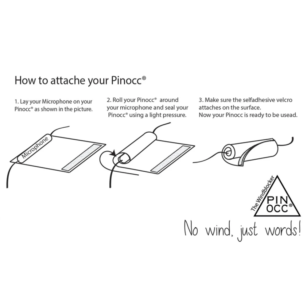 The Pinocc wind guard is the world’s first windscreen designed specifically for the microphone in your headset. It reduces the annoying sound of the wind in the area as well as eliminating the friction-filled shuffling that can sometimes occur when the mic rubs against your clothing.