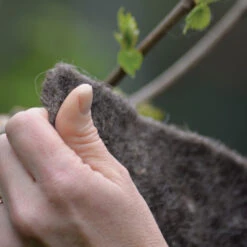 The best way to tie the carpet is to use a string. With a string you can either tie the wool mat around the outdoor pot, the trunk or around the plant’s exposed leaves and shoots. If you need to adjust the size of the wool mat, you can cut it to size with sharp scissors. String not included.